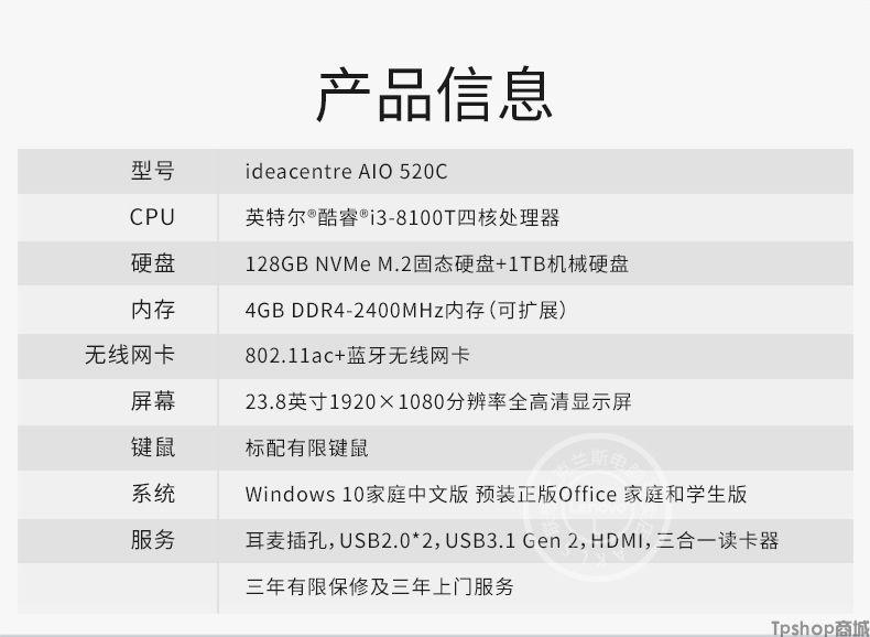 产品名称:Lenovo/联想 AIO 520 24I...