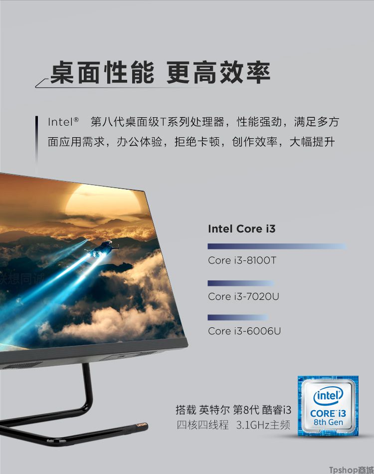 商品名称:联想AIO 520C-24 8代i3-8100T 23.8寸IPS屏商务台式一体机电脑
